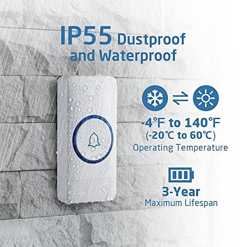 400 m / 1312 ft senza fili: 2 ricevitori per campanello per la presa di corrente inclusi;