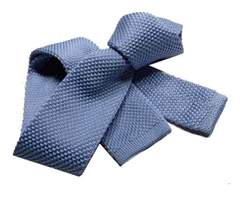 Avantgarde - Cravatta Tricot Maglia Tinta Unita Nera Verde Bordeaux Fine Slim, Colore: Azzurro
