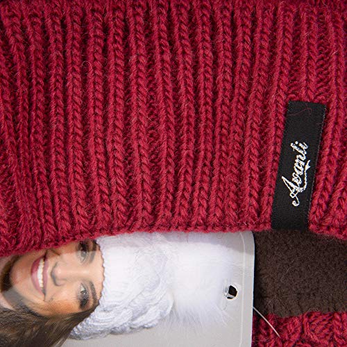 Avanti Konieczko Berretto invernale da donna con imbottitura in microvlis, berretto invernale con pompon in pelliccia sintetica, caldo berretto lavorato a maglia con pompon in pelliccia, rosa scuro., Taglia unica