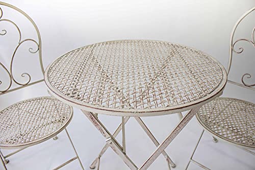AVANTI TRENDSTORE - Bistro - Set arredo esterno in ferro per due persone, composto da un tavolino con piano rotondo e due sedie, pieghevole. Disponibile in due colorazioni. (bianco antico)