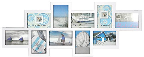 AVANTI TRENDSTORE - Shot - Cornice multipla per 10 foto di 10x15 cm, in vetro e plastica, disponibile in 2 diversi colori, dimensioni: LA 84,5x33,5 cm (Bianco)