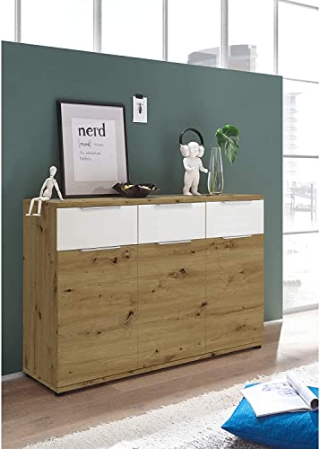 AVANTI TRENDSTORE Floriana - Comò, cassettiera a 3 ante battenti e 3 cassetti, disponibile in due colori diversi. Dimensioni: LAP 135x91x40cm