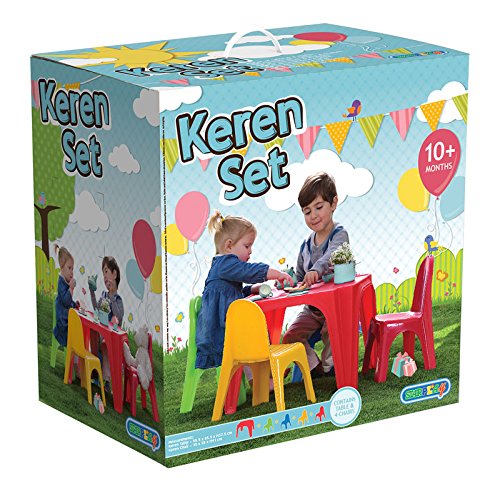 AVANTI TRENDSTORE - Kerim - Set arredo da Gioco per Bambini con 1 Tavolo e 4 sedie in plastica Colorata, Dimensioni Lap: Tavolo 55,5x37,5x55,5 cm, sedie 35x41x28 cm