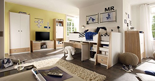 AVANTI TRENDSTORE - Pier - Letto a soppalco con scrivania estraibile e scaffale incorporato, con 4 scompartimenti aperti e 1 cassetto. Dimensioni: LAP 204x107x120 cm