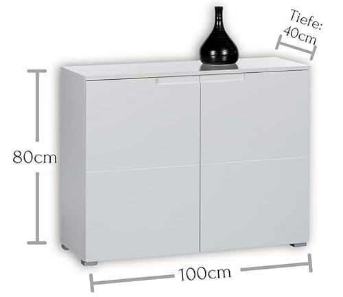 Mobile con 2 anta, allestito con 2 ripiani all'interno, in stile moderno ed elegante. Il lato frontale è di colore bianco lucido che si differenzia leggermente dal resto del mobile, creando un effetto delicato e nobile. Le sue dimensioni salvaspazio lo rendono adatto anche a case o studi più piccoli. A seconda dei vostri desideri e delle vostre esigenze, può essere utilizzato perfettamente anche in soggiorno o in camera da letto.