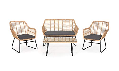 AVANTI TRENDSTORE - Staffoli - Set di mobili lounge da giardino di 4 pezzi, composto da 2 poltrone singole, 1 divano a due posti e 1 tavolino. (Con panchina)