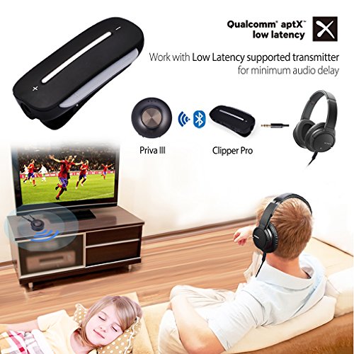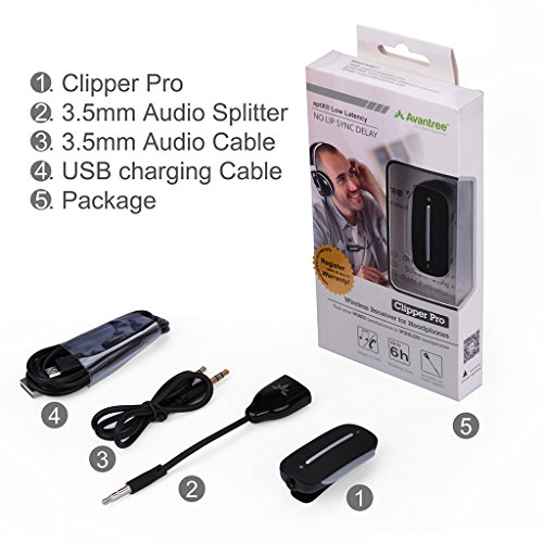 Avantree aptx - Adattatore audio Bluetooth 4.2 a bassa latenza per cuffie, ricevitore wireless da 3,5 mm, per auricolari cablati, con microfono per chiamate e musica - Clipper Pro