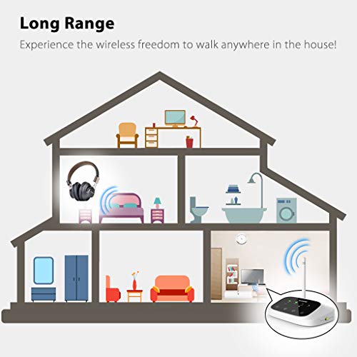 [LUNGA PORTATA]: Provate l'ebbrezza e la libertà di camminare per tutta la casa! Portata di 100 metri testate con le cuffie (Audition Pro), e di 110 metri utilizzando due unità Oasis Plus come trasmettitore/ricevitore all'aria aperta senza ostacoli. Notare che l'operatività può essere condizionata da fattori multipli (vedere sotto le FAQ1).