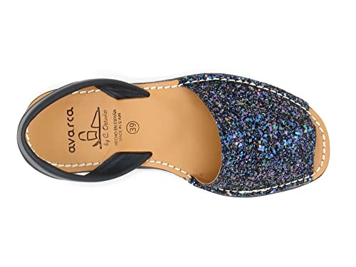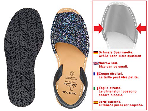 Avarca Sandali da donna con glitter e cinturino in pelle, Glitter blu navy, 37 EU