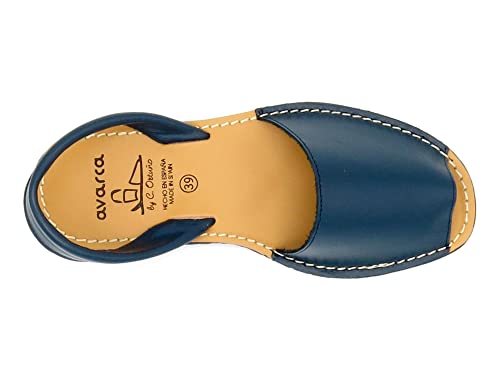 AVARCA Sandali Estivi Donna Pelle Bassi Pelle-Vera 37-EU Blu-Scuro Aperte Comodi Infradito Pantofole Scarpe Piatti Estate Primavera Spiaggia Vacanza Ragazza Menorquina Minorca Mallorca Ibiza Spagna