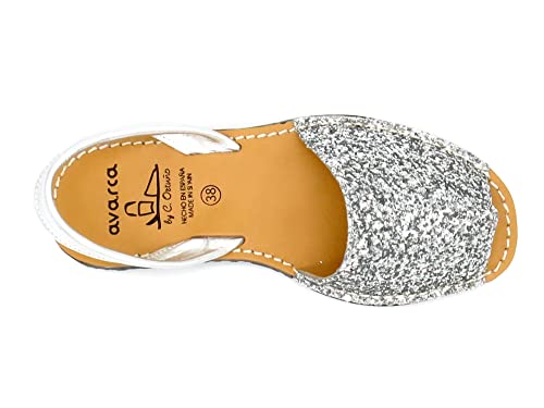 Avarca Made in Spain - Sandali da donna in pelle con paillettes glitterate, comode Menorquina con glitter 275