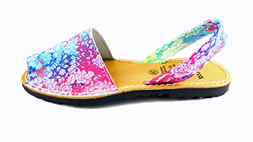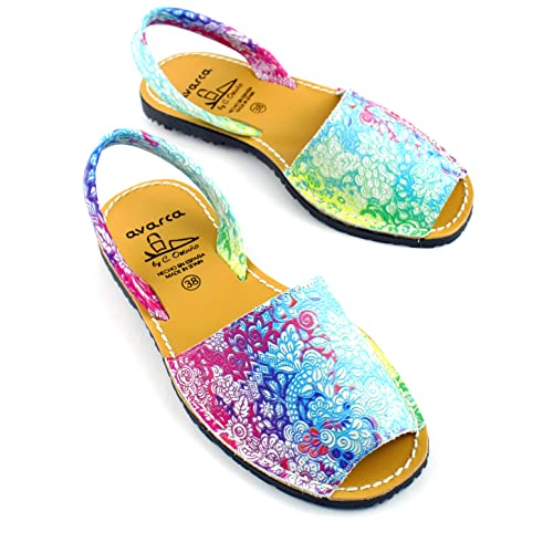 Avarcas - Sandali da donna in pelle, stile spagnolo, colore: rosso/blu, Rosso (blu rosso), 40 EU