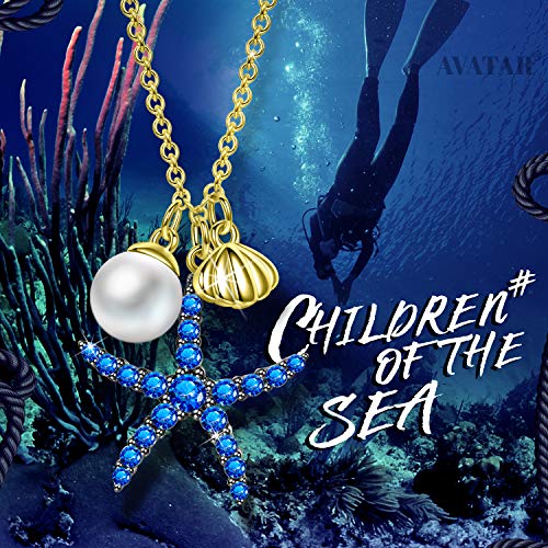 Avatar Regali di San Valentino, Bambini del Mare Collana da Donna, Argento Sterling 925 Conchiglia Stella di Madreperla dall'Austria, Bianca, Catena Allungata, 3A Zircone, 45 + 5, 5 cm (Blu)