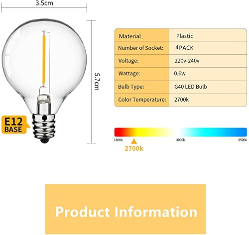 AVAVLO 4 pezzi 1W G40 Lampadina a LED trasparente Globe sostituisce vite E12 base 2700K bianco caldo 360° angolo di irradiazione per filo E12