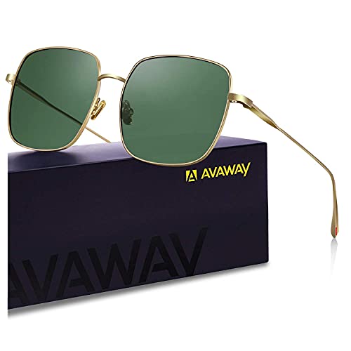 AVAWAY Oversize Occhiali da Sole Donna Polarizzati UV400 Lente, Cornice Metallica, A1