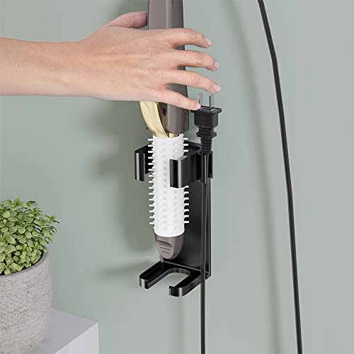 AVCXEC Supporto compatibile con Dyson Airwrap, supporto da parete per ferro arricciacapelli, supporto da parete universale, supporto in alluminio, autoadesivo con porta spina (nero)