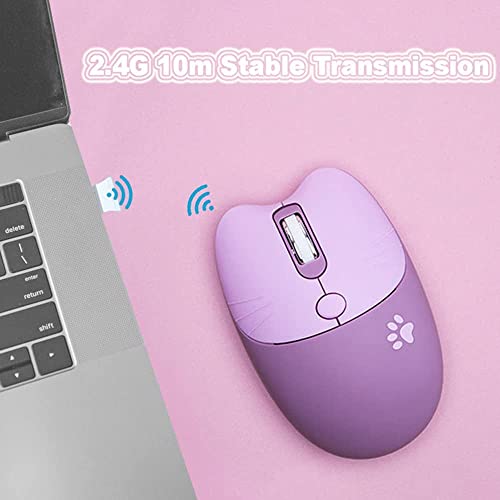 AVEKI Mouse senza fili silenzioso, 2,4 G, mouse senza fili per ragazze, con ricevitore USB, mouse per gatti, per laptop, PC, computer Mac (viola taro)