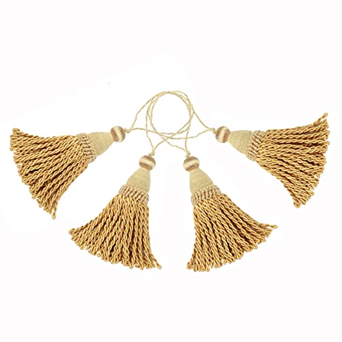 BEL AVENIR Confezione da 4 nappe con passanti a forma di nappa, fatte a mano, accessori fai da te per la decorazione della casa (oro)