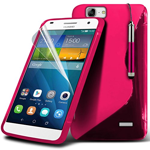 Aventus ( caldo Rosa ) Huawei Ascend G7 custodia, caso, Case Cover Protective Elegant S Linea d'Onda Custodia Morbida pelle coprire con schermo LCD Protezione, lucidatura Panno & Mini Stilo retrattile