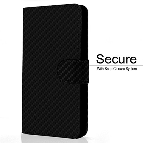Aventus Prestigio Multiphone 5500 Duo Fibra di Carbonio Universale Custodia Portafoglio Spring Clamp di Alta Qualita, con Accesso alla Fotocamera e Fessure per Carte di Credito e Banconote
