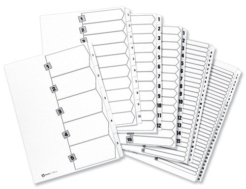 Avery 05242061 - Divisori prestampati in Mylar A4, 1-20 numerico, confezione da 5, colore: Bianco