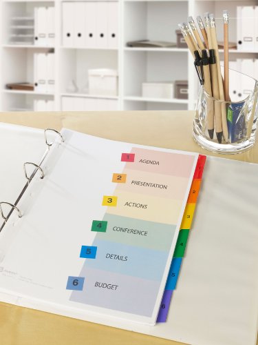 AVERY 2000501-Set di 6 divisori con linguette, indici da personalizzare il contenuto, formato A4, colori assortiti e forate, per stampa laser e a getto d'inchiostro