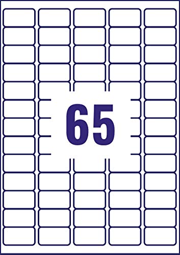 Avery L 7651-250 organizzare/Return-Mini etichette Per indirizzi, Per stampanti Laser, 38,1 x 21,2 mm, 65 etichette Per foglio A4, 250 fogli