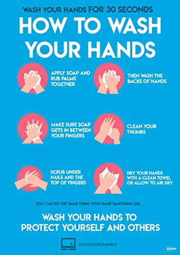 Avery COVID-19 - Cartello con scritta"How to Wash Hands" in formato A4, 297 mm x 210 mm, 2 poster autoadesivi per confezione