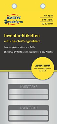 Avery Italia 6921 Etichetta per Inventario in Alluminio Prestampata, Confezione da 10 Pezzi, argento