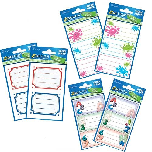 Kit etichette scuola per libri e quaderni, 3 fantasie, 2 pezzi per ciascuna fantasia, 6 pezzi