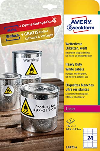 Avery Italia L4773-8 Etichette in Poliestere, 63.5 x 33.9 mm