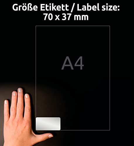Avery Italia L6133-20 Etichette adesive in poliestere argento, 70 x 37 mm, 24 etichette per foglio, confezione da 20 fogli, stampanti laser, ultra resistenti