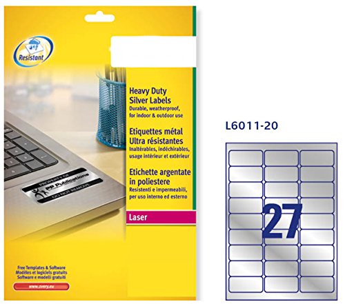 Avery L6011-20- Set di Etichette per Identificare Cavi ElettriciArgento, 63.5 x 29.6, 540 Pezzi