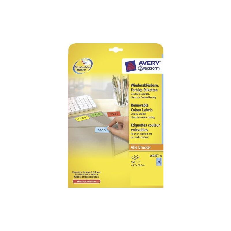 Avery Mini-labels, Blue 45,7 x 21,2mm (20). Dimensioni (un foglio): 45,7 x 21,2mm