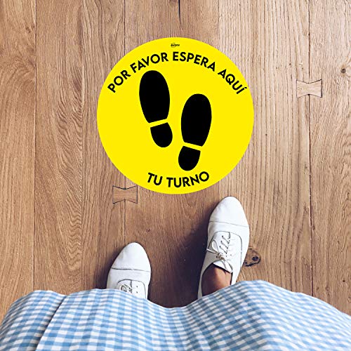 Avery Spagna COVFSYB420-SP Segnali Distanza sociale Adesivi per Pavimento Giallo/Nero,"Mantenere la distanza minima" rotondo Ø 420 mm, 2 fogli