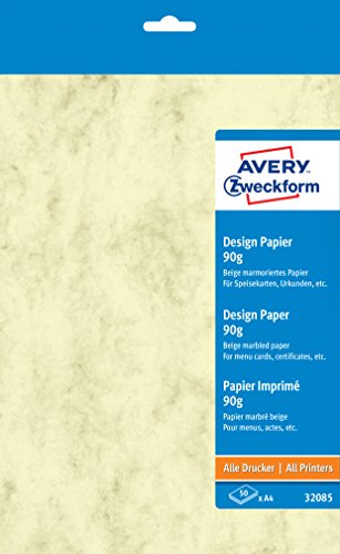 Avery Zweckform 32085 lettere e carta per certificati, inviti, formato A4, 90 g, confezione da 50 fogli, marmorizzato, colore: beige