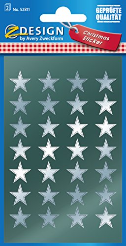 Avery Zweckform - Adesivi natalizi a stella, argento, 56 pezzi