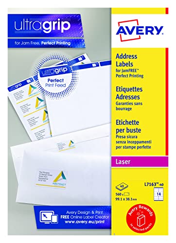 Avery Zweckform Etichette indirizzi, 14 su ogni foglio da 99,1 x 38,1 mm, colore: Bianco