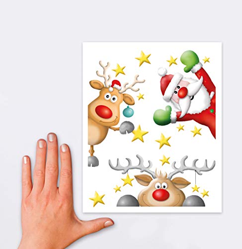 AVERY Zweckform 6 immagini per finestre con renna di Babbo Natale (made in Germany, autoadesivi per finestre, finestre, pellicola rimovibile, riutilizzabile), 1 foglio/6 adesivi, 52953