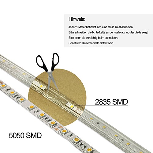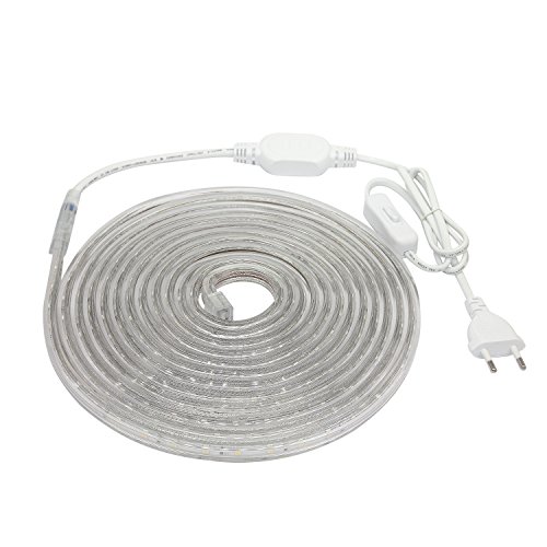 AveyLum, striscia a LED, luce bianca calda, 2835 SMD, impermeabile, con spina europea, per la cucina domestica, come decorazione natalizia (220V) [Classe energetica A +], PVC, bianco caldo 220.00volts