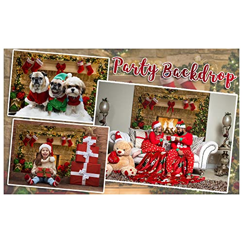Avezano 2 * 1.5m Sfondo di camino di Natale, Natale Calze Albero Decorazione regalo Banner per feste, Vigilia di Natale Camino Fotografia Sfondo