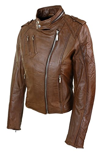 Aviatrix Chiodo Slim Fit da Donna in Vera Pelle e Interno Vellutato Stile Biker Elegante Legno-Marrone 3XL