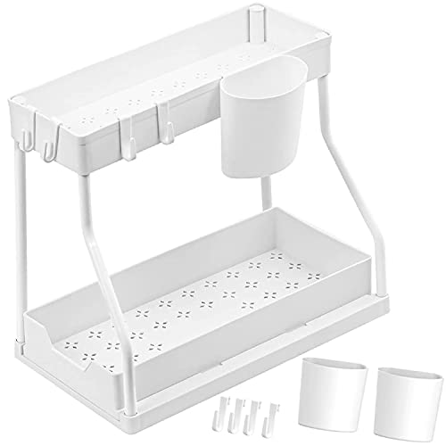 ?Risparmio di spazio e multiuso?: 2 livelli Uno spazio ordinato per riporre sotto il lavandino. Viene fornito con 4 ganci rimovibili e due tazze. Detersivi, panni e piccoli oggetti possono essere riposti nel cestino. Il bordo alto più di 5,3 cm impedisce agli oggetti di cadere