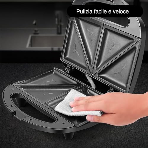 Tecnologia Antiaderente: Le piastre per toast antiaderenti assicurano che i tuoi panini non si attacchino, rendendo la pulizia un gioco da ragazzi. Niente più residui di cibo fastidiosi.