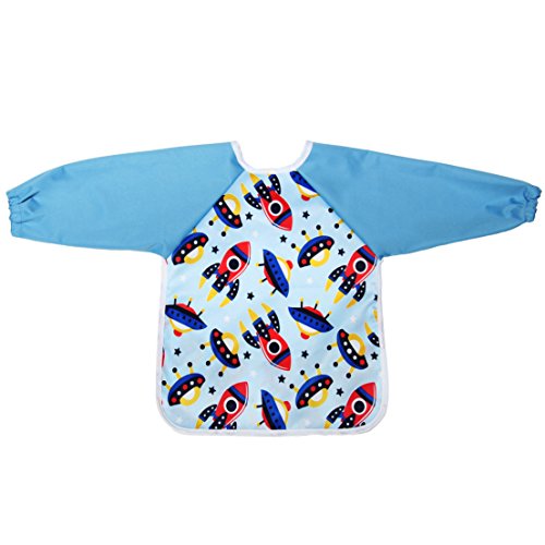 Aviloo - Bavaglino con maniche per bambini,100% impermeabile e lavabile, extra lungo, con tasca e chiusura in velcro