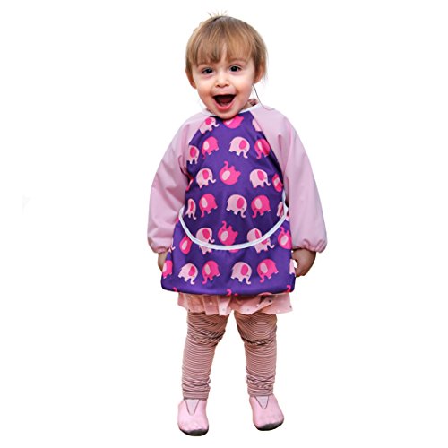 Aviloo - Bavaglino con maniche per bambini,100% impermeabile e lavabile, extra lungo, con tasca e chiusura in velcro