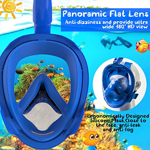 Avoalre Maschera Subacquea, Maschera da Snorkeling Vista Panoramica a 180° per Maschera Intera Anti-Nebbia e Anti-perdite con Supporto per Videocamera per Bambini, XS Blu