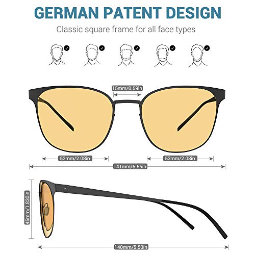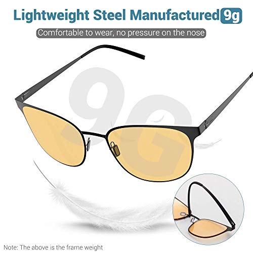 【Blocco delle luci blu digitali】 - Le lenti in policarbonato con blocco della luce blu brevettate da Avoalre sono realizzate con la più recente tecnologia di controllo dello spettro, promettendo di filtrare fino al 90% della gamma più dannosa di luce blu artificiale (con una lunghezza d'onda dominante tra 435 e 495 nm ). Poiché la sovraesposizione alle luci blu può portare a affaticamento della vista digitale, disturbi della retina, disturbi del sonno e ritmi circadiani.