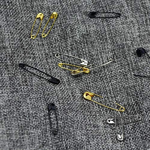 AvoDovA 540PCS Spille di Sicurezza con Scatola di Plastica, 4 Misure Spille da Balia, Aghi per Trapuntatura, Perno di Sicurezza per Abbigliamento Crafting e Fai da Te, 19mm-48mm, Nero Oro Argento