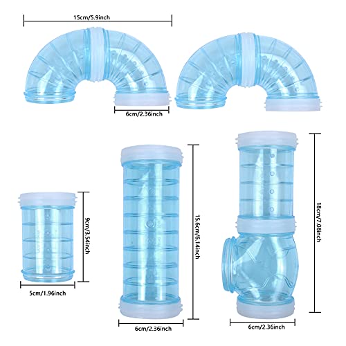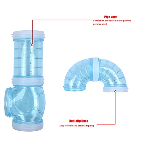 AvoDovA 8PCS Tubo per Criceti, Tunnel per Criceti Trasparente, Tubo di Collegamento Esterno della Gabbia del Criceto, Giocattoli per Criceti ad Espandere Lo Spazio (Blu)